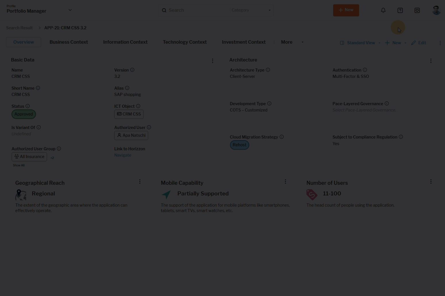 Application Portfolio, Business Portfolio, Information Portfolio, Investment Portfolio, Technology Portfolio, or Service Portfolio: These categories allow you to find categorized visualize items targeting business questions to add to Home > Business Questions. Set a checkmark for the content item you want to include it or clear a checkmark to remove a content item. Click Update |