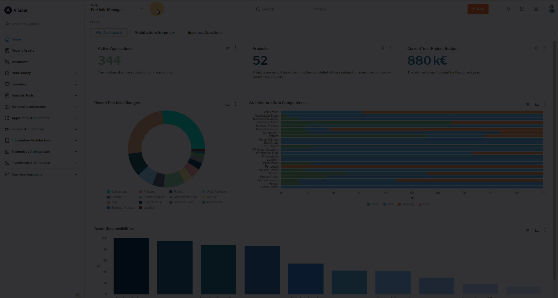- The Portfolio Analyst user profile is for users who are interested in seeing up-to-date analytics about the IT portfolio in order to understand the most business-relevant questions and make informed strategic decisions. Users can view all business questions and have read-only access permissions to all assets in the repository.